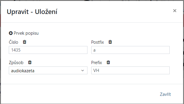 Umožňuje editovat další způsoby uložení (svazek, etuje, audiokazeta, kompaktní disk aj.).